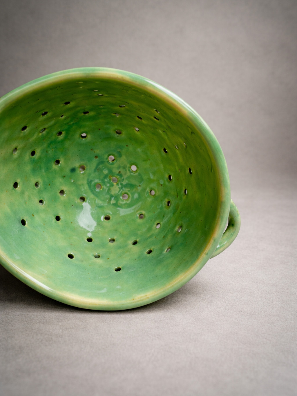 Al ser una pieza artesanal pueden existir pequeñas variaciones en forma, color y distribución de perforaciones. Cada escurridor es único.