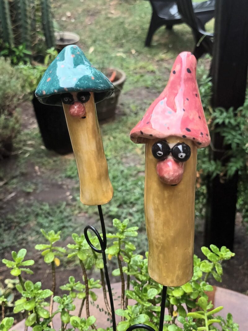 Modelados y esmaltados manualmente, con formas divertidas y colores vibrantes que aportan personalidad al jardín.
