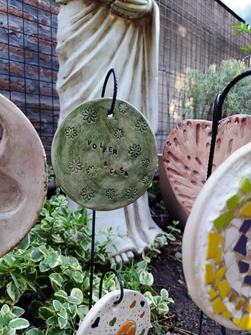 Pinchos volver a casa de cerámica artesanal con base de hierro hechos a mano, único en diseño y lleno de detalles que transmiten calidez y autenticidad.