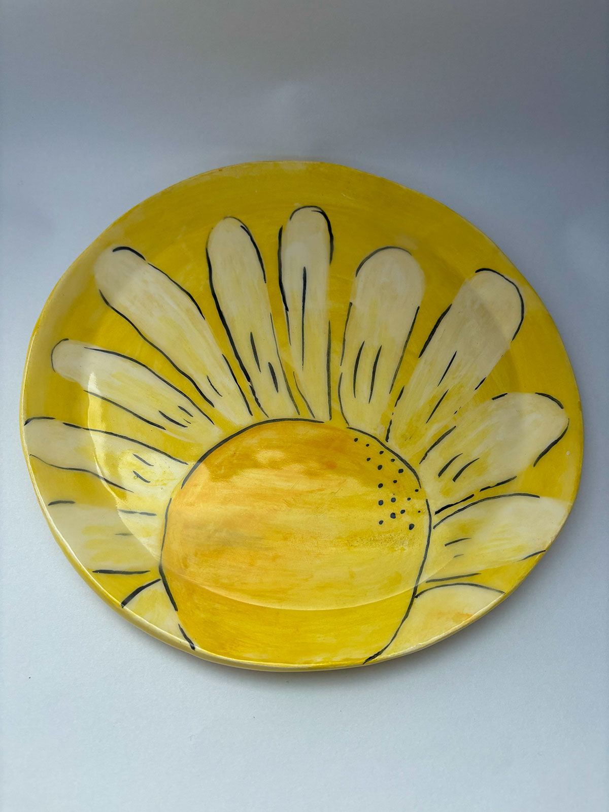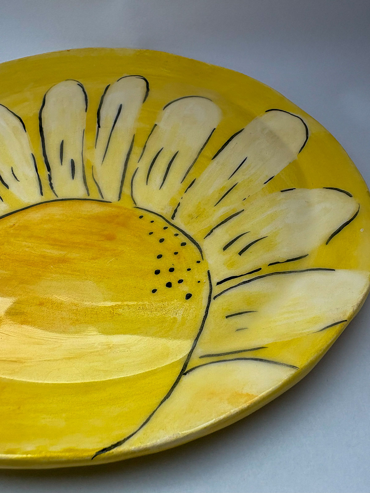 Plato Flor Amarilla de Postre de cerámica artesanal hecho a mano, único en diseño y lleno de detalles que transmiten calidez y autenticidad.
