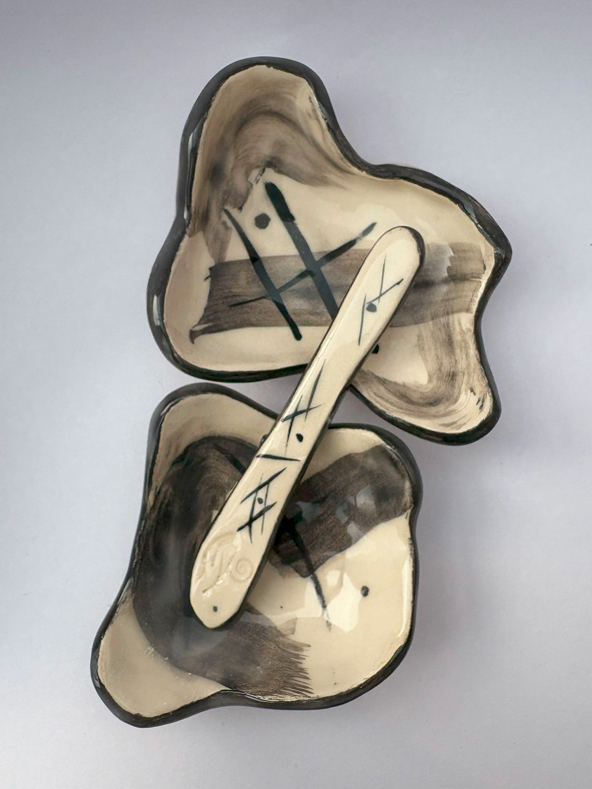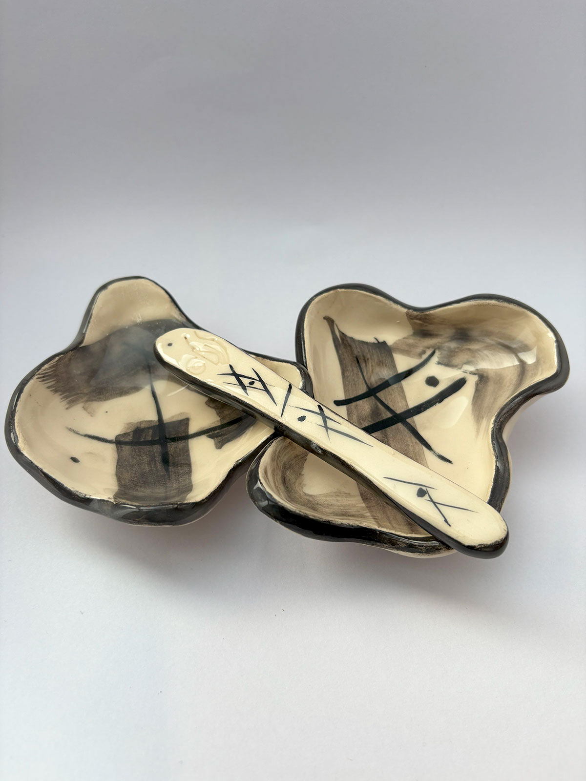 Salseros Chino + Untador de cerámica artesanal hecho a mano, único en diseño y lleno de detalles que transmiten calidez y autenticidad.