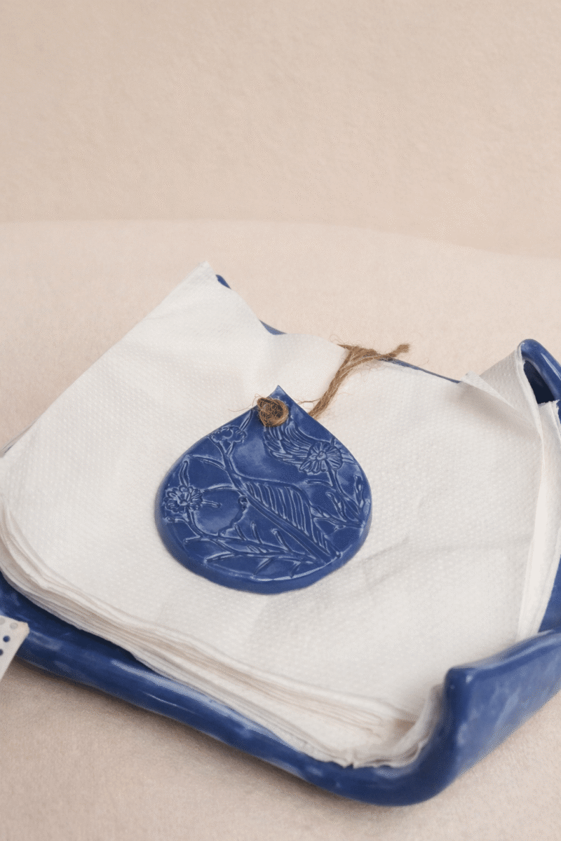 Servilletero Cerámica Artesanal Tipo Repasador hecho a mano, único en diseño y lleno de detalles que transmiten calidez y autenticidad.