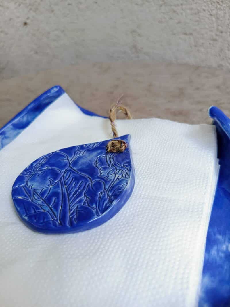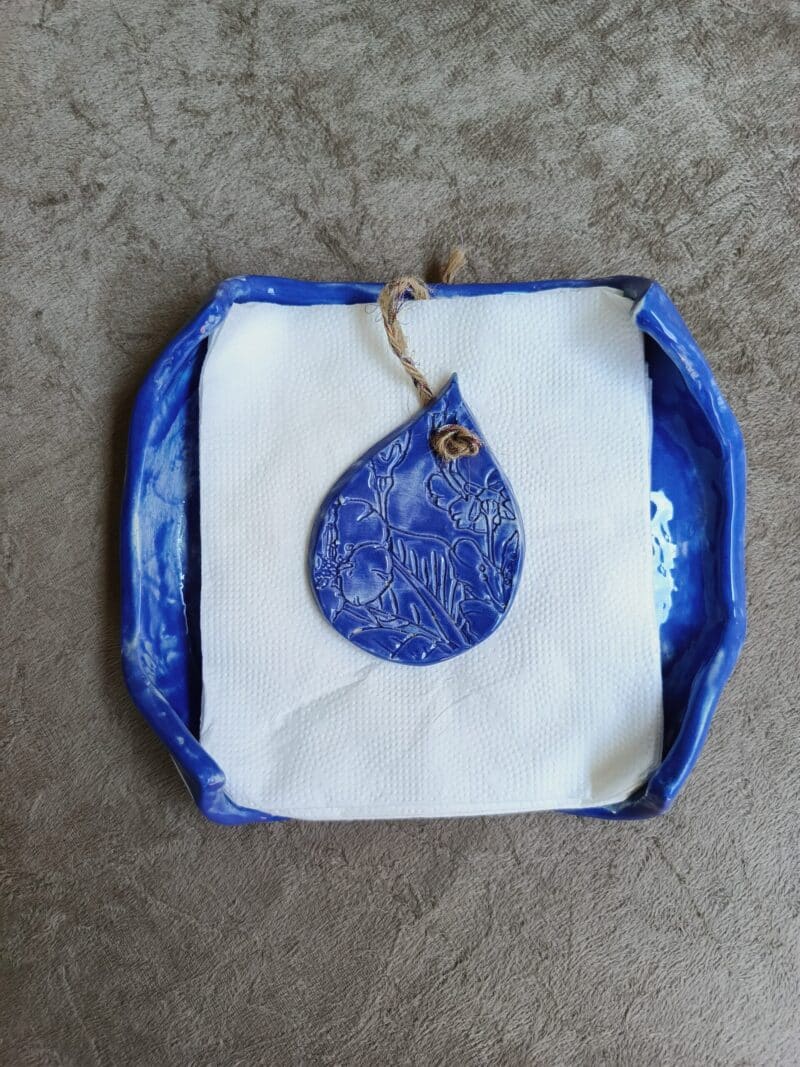 Servilletero Hoja Azul cerámica artesanal.